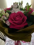 Заказывала букет для мамы находясь в другом городе, поэтому волновалась о качестве цветов. Позвонила сюда по совету знакомой и не ошиблась! У меня были свои пожелания - чтобы у цветов был сладкий аромат и определенный цвет, который любит мама. По телефону и через фото мне посоветовали конкретный сорт роз, а так как в наличии этого сорта не было, озвучили, что специально под мой запрос привезут цветы в студию и соберут букет. Плюс, по совету девушки согласилась на предложенный эвкалипт, который сейчас у мамы дома засох и тоже радует её ,фото от мамы прикрепляю☺️