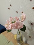 подарили сегодня 1 гортензию, пока она была в упаковке всё было хорошо, форму держала. поставила в вазу (воды налила много, это видно на фото) и через несколько часов она развалилась, соцветия мягкие. впечатления не очень. возможно это из-за того,что цветы хранились не в холодильнике
