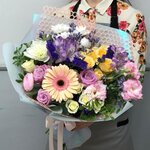Букет - отличный! Соответствует оригиналу, что выставлен на сайте (см. фото для сравнения). Цветы - свежие! Цены - приемлемые! Персонал - заботливый! Переписка по Whats App - все детали уточняют, прежде чем что-то делать. Ещё и шары в продаже есть на выбор по надписям, что не в каждом салоне цветов встретишь! Ценник - всего 120 руб./обычный шарик - в других салонах то шары, не подходящие по тематике, то цена несоответствующая. Что еще надо для счастья?!