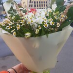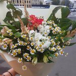 Обожаю их. Если хотите стильно, красиво ,со вкусом, и чтобы ваши пожелания были учтены, и вообще если красивый экспромт- это сюда. Заказала на День Рожления свекрови. Любит полевые цветы и ромашки: на фото вот такой шикарный экспромт. Вместо ягод,цвет добавили небольшими розами👍😀 получился полевой , лчень легкий нежный и тончайший красивый запах. Стоит до сих пор . В конце сентября брала. Причем, как предупредили, несколько цветов через пару дней распустяться, и сианет еще красивее,так и получилось👍🎉💐 фото сделала очень быстро по дороге на ДР.