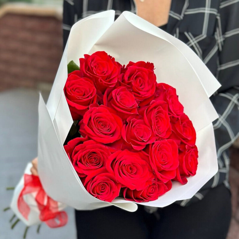 15 красных роз 50 см (Эквадор) в крафте