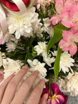 Спасибо...так держать ! В такой день Вы...смогли вовремя ! Доставить тепло сердец,любовь и внимание наших детей.День МАТЕРИ ! Из Нижнего Новгорода. Доченька отправила мне этот букет.Дорогого стоит. Цветы свежие, оформление супер и открыточка .Спасибо !