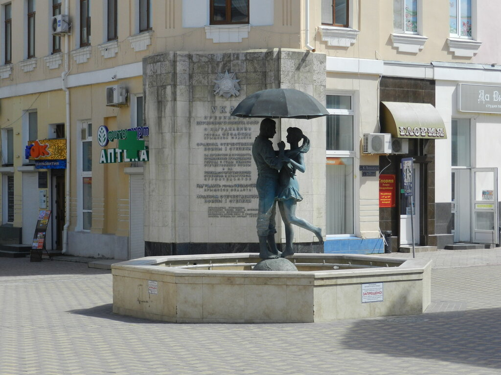 Симпатичное место недалеко от моря .Фонтан Влюблённых был открыт в мае 2017 года в самом центре Феодосии на Музейной площади и сразу стал популярным местом для фотоснимков. Трёхметровая скульптура из бронзы изображает двух влюблённых, которые прячутся под большим зонтом от летнего дождя. Бьющая из фонтана и стекающая струями вода оживляет пару. Они не замечают ни ливня, ни вспышек фотокамер, ни людей вокруг. Композиция «Влюблённые под зонтом» появилась на средства неравнодушных предпринимателей Феодосии, которые решили продолжить романтическую атмосферу центра города и установили фонтан прямо напротив дома Александра Грина, автора знаменитых «Алых Парусов». Отдельно стоит посмотреть на фонтан Влюблённых ночью. Скульптуру подсвечивают снизу восемь фонарей.