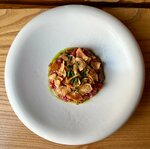 Отличный ресторан! Жаль, что нашёл его только в последний день командировки в Екатеринбург. Красивый интерьер, хорошее обслуживание, еда очень интересная и необычная. В меню много всего, что хотелось бы попробовать! Заказывал: - Тартар из говядины с трюфельным маслом (классная подача, хорошо замаринованное мясо). - Копчёный угорь с вяленой грушей (я очень люблю угря, и здесь он был супер! В сочетании с грушей и подложкой это очень вкусно!) - Стейк мачете с цукини с соусом черный перец (отличное мясо правильной прожарки). - Помело с белым шоколадом и сорбе из юдзу (никогда такого не пробовал! Перемешиваешь помело со всеми остальными остальными ингредиентами и получается нереально вкусно!)