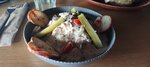 Еда вкусная, но пока ждали гарнир основное блюдо уже остыло. Начало хромать обслуживание