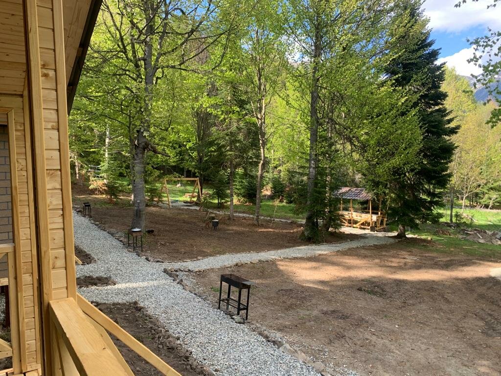 Уникальное место. Расположено в лесу. Можно насладиться природой. Мы тут находимся с 4 по 8 декабря. Кроме нас никого нет. Есть детская площадка, что делает отдых приятным и для деток.