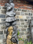 Рядом с домиком есть много разных фигур из камня , металла и дерева. Симпатичное строение.