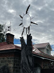 Интересное место со множеством изделий из металла и шедевров кузнечного дела. При желании владелец может провести мастер-класс. Рядом стоят замысловатые фигуры из дерева.