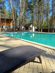 Ездили в самые последние дни лета. Накануне 1 сентября. Возможно поэтому народу было не очень много, что сильно понравилось. Территория небольшая, но всё домики стоят среди сосен. Вид из окна приятный. Проживали в двухместном номере. Домик на четыре части поделён. Для меня большим минусом оказалась слышимость соседей. Вроде и негромко разговаривали, но слышно всё... В номере всё необходимое есть, включая посуду( тарелки, чашки, фужеры) Сантехника не очень чистая. С одной стороны понятно, что используют всё время, поэтому подтеки, ржавчина, но с другой особо никто и не мыл, видно сразу( Ещё для меня большой минус это лестница на второй этаж, ночью не очень комфортно. Очень удобно у каждого домика есть сушилка, можно вешать бельё, если приежаете на долго. Замечательное питание, всё включено, у бассейна бесплатно кофе, чай, мороженное, вермут, виски( алкоголь не брали, о качестве не скажу) . В столовой неудачно расположены места, где берёшь еду. Всегда образуется пробка). Возможно разумнее было расположить вдоль окна по всей длине, но это моя субъективная версия. Если заканчивается блюдо, то молодые люди всегда докладывают. Со стола сразу убирают посуду и скатерти и стелят свежие. Бассейн небольшой, но жары особой не было, поэтому купались только дети. Понравился хамам и услуги массажа, по цене тоже). К отдыху рекомендую! Ну а недостатки есть везде) Очень приятно, что есть такое место, где можно отдохнуть и не думать о питании.