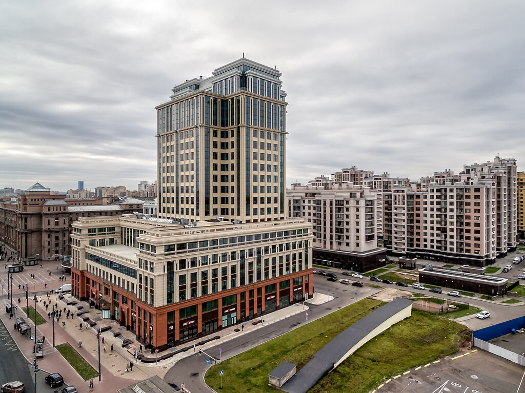 Прекрасный современный офис прямо рядом с метро, на цокольном этаже есть кафе, бар, ресторан, банк. Здание - настоящее украшение Московского проспекта, ночью оно красиво освещено.
