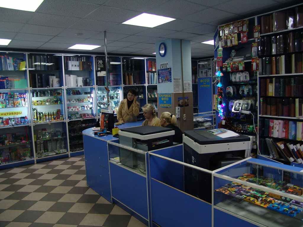 Заведение сомнительного качества. Сочетает в себе всё и сразу, начиная от выдачи товаров, заканчивая фотографиями на документы. Последние, к сожалению, сделаны "на троечку", но если нужно сделать быстро, то пойдёт. Не смотря на то, что на дворе 2024 год, в предприятии отсутвует какая-либо оплата по карте, поэтому настоятельно советую взять с собой наличку.