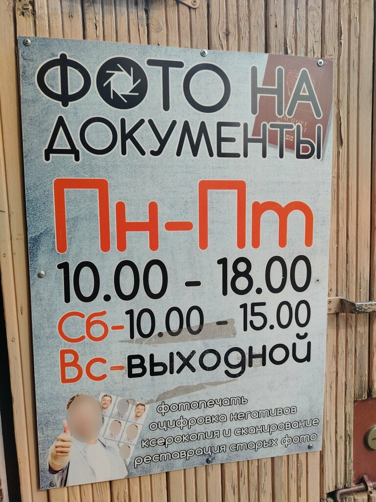Качественные фото на документы, цены разумные, но крутая лестница с короткими ступенями и низкие потолки.