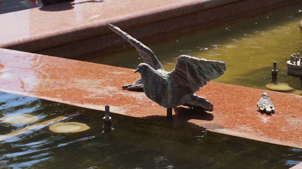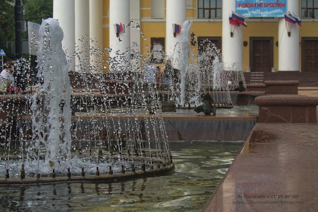 Сейчас фонтан закрыт, но летом работает и красиво подсвечивается вечером.
