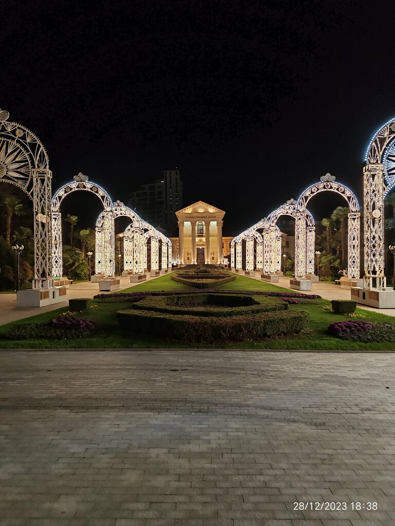 Красивый парк, мы там по вечерам гуляли. Красиво подсвечены высокие арки, любители петь выступают со своей программой, приятно послушать.