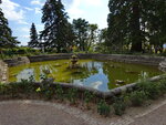 Фонтан не фонтанирует , бассейн изрядно обветшал и некоторые элементы отделки утрачены или прибывают уж слишком в антикварном состоянии , хоть это и придаёт этому месту необходимый исторический флёр и антураж. Вода меланхолично застойно-зелёная и в ней отражается исполинские секвойи . Можно задумчиво как сомнамбула бродить по его периметру не о чём непариться , прибывая в меланхолии и думах о чём не будь не суетном. Хорошо это удаётся внесезонье , когда нет толп пилигримов и странствующих по обязательному треку достопримечательностей.