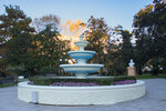 Фонтан прекрасен в окружении лавочек и магнолий у Летнего театра