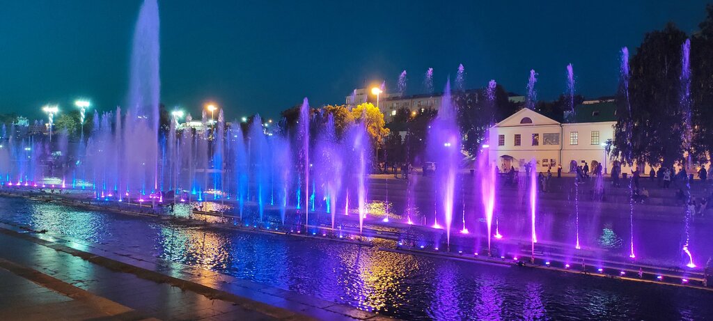 Вечером прикольные фонтаны я с другом там был очень понравилось стоит посетить туристом и ещё на плотинке также очень красиво