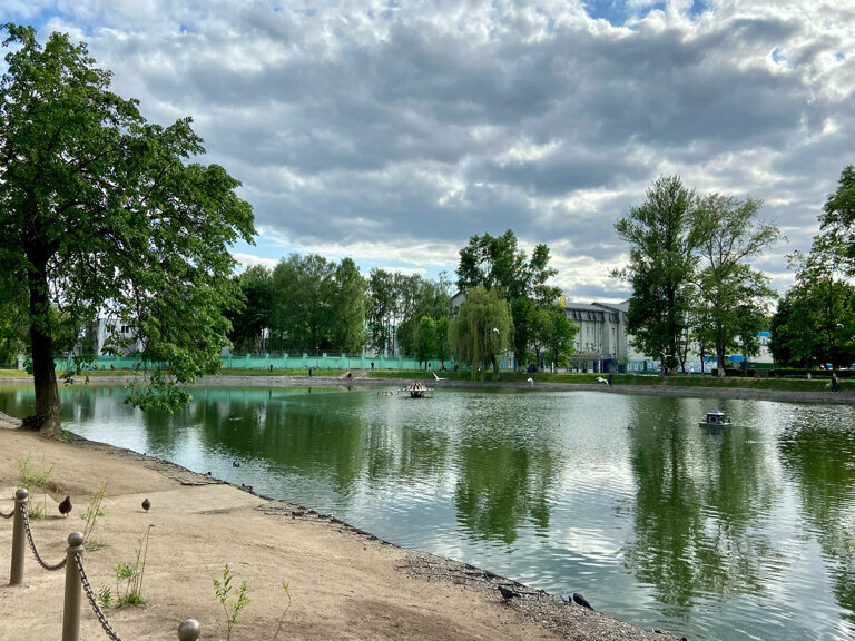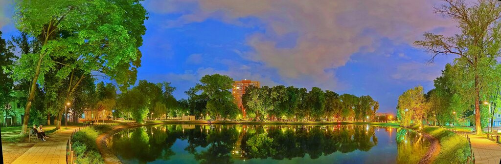 Отличное место для тихого вечернего времяпровождения. Можно посидеть на подвесной лавочке, посмотреть на уток, фонтан. В жару здесь легко найти тенек. Вечером насладится неторопливыми променадами жителей и мягкой подсветкой деревьев