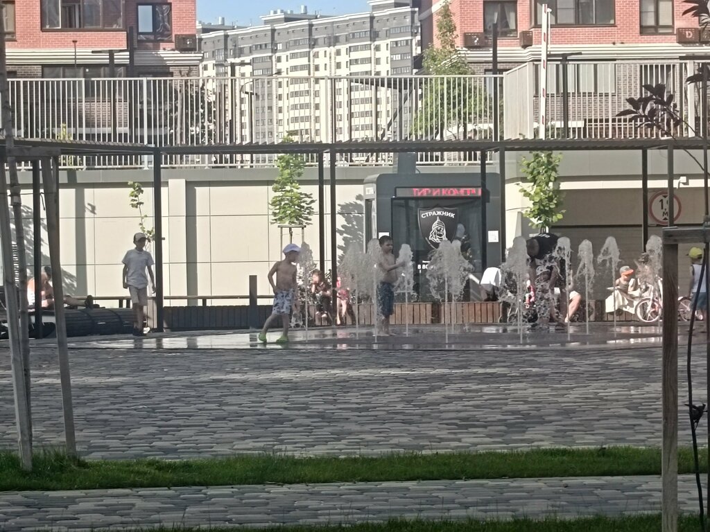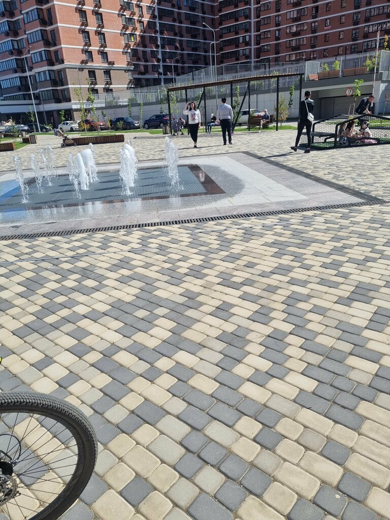 Всё замечательно обустроено, красивый фонтан, удобные лавочки. На одних можно просто посидеть, другие похожи на лежаки, весьма удобные с решётчатой деревянной крышей. Качели. Шикарное, спокойное место для отдыха. Единственное что как и везде наверное, дети, которые лезут в этот фонтан) Шлколад вроде не идёт, обычная вода, взрослые 0 внимания, ну гуляются и гуляются...