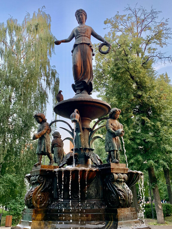 Все аллеи Лядского парка сходятся у фонтана. Фонтан замечательный и является изюминкой этого зеленого пространства. Около него всегда многолюдно, часто устраиваются фотосессии, получаются красивые фотографии. В летний зной фонтан спасает своей прохладой, вечерами при свете фонарей напоминает фонтаны Санкт-Петербурга. В окружении парка много зданий исторической постройки, фонтан своей архитектурой поддерживает и связует атмосферу малоэтажного исторического культурного центра. У голубей к фонтану особая любовь. Рекомендую к посещению, вечером обязательно.