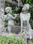 Фонтан скорее представляет собой скульптурную композицию - колодец, прелестная юная девушка и множество малюток-херувимчиков помогающих ей набрать воды. Однако при ближайшем рассмотрении - воды там нет, просто современная скульптура. Так что напиться или умыться из колодца не удастся. Можно сказать, вся композиция создана на грани хорошего вкуса по уровню "зашкаливания милоты", но все же очень приятна глазу. Композиция украшает террасу ресторана "Алые паруса". Вокруг ресторана так же стоят два гипсовых больших льва, у одного отбит хвост, и есть настоящий действующий фонтанчик, тоже довольно замысловатый. Газон вокруг украшен отслужившими свой век велосипедами с цветочными корзинами.