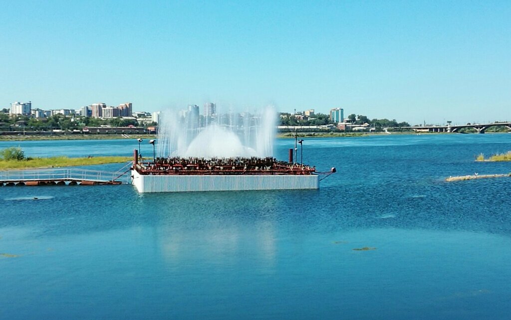 Небольшой фонтан, расположен неподалеку от парка остров Юность, на Ангаре, сделан достаточно интересно, но лучше бы они его поместили в воду целиком. Фонтан работающий, прогуливаясь, стоит осмотреть.