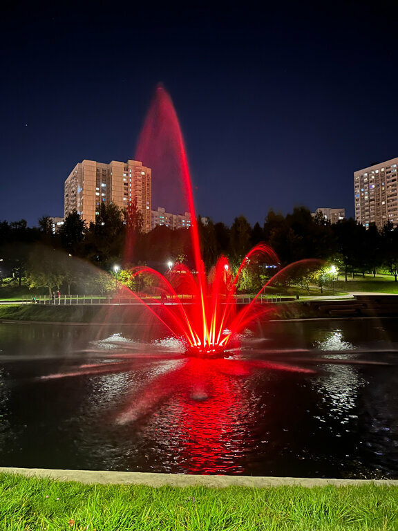 Отличное место очень много деревьев, парк находится в шаговой доступности от метро. Красивые фонтаны с подсветкой очень красиво смотрятся в тёмное время суток