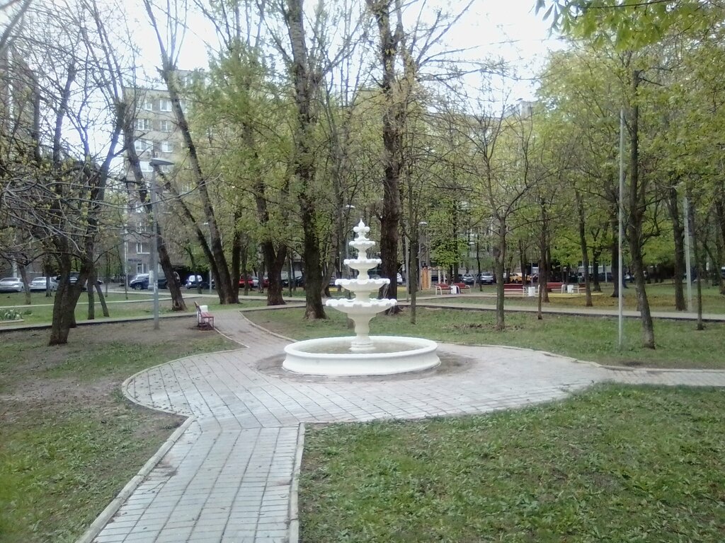 Красивый фонтан в уютном сквере