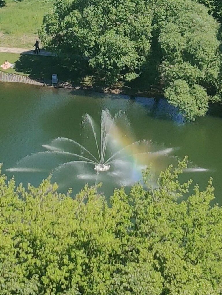 Фонтан симпатичный, только он не в той точке пруда, что показывают карты, а ближе к Черкизовской