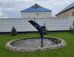 A fountain with a black dolphin. A pleasant place