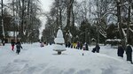 Фонтан на центральной аллее оздоровительного комплекса "Снегири". Зимой рассмотреть достаточно проблематично, но судя по всему - обычных элемент садово-паркового искусства и ландшафтного дизайна...