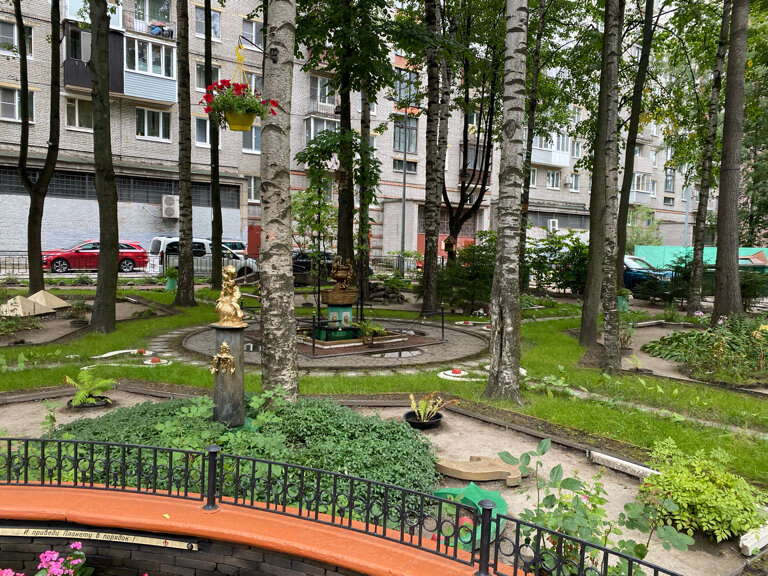 Потрясающая достопримечательность. Тактический урбанизм. Пенсионер своими руками 18 лет содержит сквер. Тысяча Тюльпанов, фонтаны, крокусы, пирамиды, сад камней.