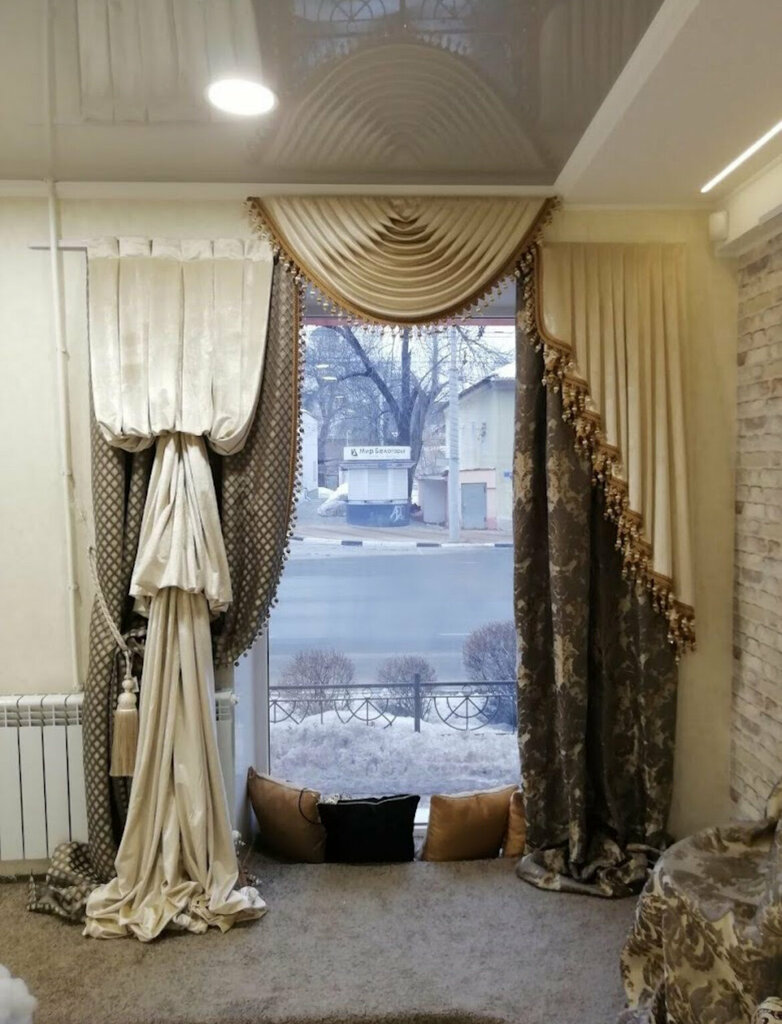 Огромный выбор, много очень красивых вариантов штор. Цены средние, какие-то могут и куснуть, но лично я нашла для себя обалденные портьеры по низкой цене. Отрезали с запасом в 20 см. Шторную ленту вообще отмотали с запасом от души и дали рекомендации по её пришиванию. Общалась с тремя продавщицами, все понравились. Склада у них в магазине нет, заказ выдали на следующий день, после заказа надо внести залог в половину стоимости (сказали, без залога ткань не режут - ну, можно понять). Проблем не возникло.