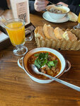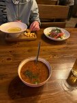 Выбрали место по наибольшему количеству отзывов - место полностью соответствует высоким оценкам посетителей. Большой просторный ресторан выполнен под дерево, при входе, внутри самого помещения, есть боксы для снаряжения. Очень вкусные супы и не только - брали шорпу, лагман, уху, люля кебаб из баранины и шашлык, овощи на гриле, пиво на разлив и бутылочное. Блюда просто объедение, и выглядят эстетично. В супах столько мяса! На количестве ингредиентов тут точно не экономят. Также отведали фирменную сливовую настойку. Удобно расположенная на столах панель с кнопками для вызова официанта, счета и меню. Все три дня, что пребывали на курорте, обедали именно там!