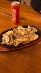 Вкусно , сытно , принесли быстро . Заказала куриное филе на мангале, и овощи на мангале , баклажан последний на тарелке был не дожарен или что-то не так с ним, не съела. Сидели на 2 этаже , никого не было и мы успели заказать , через 10 минут все столы заняли и люди ждали заказ некоторые по часу. Остальные хотели подсесть на свободные места к другим чужим людям , поскольку столы были большие и рассчитаны человек на 6