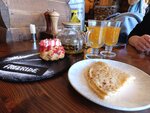 Плюсы: Большие окна, классный вид, удобные столы и скамьи, добродушная официантка. Минусы: отвратительная еда. Вот совсем плохо. Шакшука - банка томатной пасты, в которую разбили два яйца. Выглядит симпатично, но после двух вилок есть невозможно. Чай «фрирайд» - это гадость редкостная, просто невозможно пить. Нужно иметь талант, чтобы так отвратно готовить. Ребята, еда должна быть вкусной, сделайте что-то с этим. Кальян в общем зале - не очень приятная вещь для тех, кто не курит.