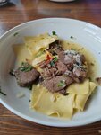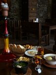 Внутри уютно, ценник очень высокий. Порция лапши домашней 300гр - 450 рублей. Коньяк самый дешевый 40 гр - 400рублей. И весь крепкий алкоголь в рюмке по 40 грамм. Хычин с картошкой и сыром слишком тонкий прям не поймешь где картошка-то?! Стоит 350рублей.