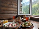Объективно лучшее кафе на поляне Азау. Много раз за неделю своего отпуска завтракали и ужинали здесь. Подача на завтрак на 4 человека - 10 минут, подача на ужин на 4 человека - 15 минут. Очень быстро и очень вкусно, порции нормальные. Цены - как везде. Красивый антураж, хоть есть люди (в другие кафе можно прийти и там никого - и как то скучно одним сидеть.) Что пробовали: Английский завтрак Сырники с персиком Кофе замечательный Чаи Уха с сёмгой Уха с форелью Паста 4 сыра Шашлык с курицей Салат капрезе Салат с ростбифом Салат с креветками Бешбармак Алкогольные коктейли очень качественные