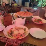 Доброго времени суток. Итак что вы получаете за 12 тыс в чеке: Медленное ужасное обслуживание от официанта, который явно встал не с той ноги. Ужасные салаты, по ощущениям просто "накидали" ингридиентов и выдали в зал. Было относительно вкусно, я не спорю, но подача это было ужасно. Приятная музыка, танцы. Я сюда больше не приду , в 2021 г. Этому кафе не было равных, а сейчас просто делают деньги на отдыхающих.