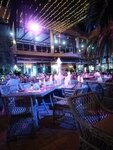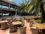 Отличная атмосфера. Ненавязчиво, по летнему и уютно.... Пальмы шикарные, фонтан тоже радует глаз. Приятная живая музыка (исполнителей двое: парень и девушка, что даёт прекрасное разнообразие). Еда - тоже все замечательно. Вкусно. Отдохнули на ура