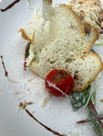 Картинка красивая, и на этом всё( Заказали цезарь, сковородку с курицей, мохито. Вопросов нет только к безалкогольному мохито) В процессе еды обнаружила потрясающий помидорчик (фото). Сковородки принесли, пока доедали цезарь они остыли. Даже не знаю на сколько они горячими были изначально, и были ли) На вопрос о помидоре официантка просто пожала плечами, и сказала, что салат уже съеден. Действительно, вопрос ей задан был о помидоре, когда в тарелке оставался лишь один помидор) Фотограф отлично занял нас, пока мы ждали заказы, однако с готовыми фото подошел в тот момент, когда мы кушали. Было очень не комфортно.