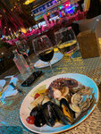 Сенодня были в ресторане, заказали креветки в сливочном соусе и мидии в сырном соусе, вино помогла выбрать официантка, её выбор нам понравился,всё было очень вкусно, вежливо и душевно!!! Живая музыка, исполняют мужчина и девушка по очереди, поют замечательно и выбор репертуара танцевальный, мы замечательно отдохнули, натанцевались от души!!! Нам это место очень понравилось, ещё вернёмся сюда🥳