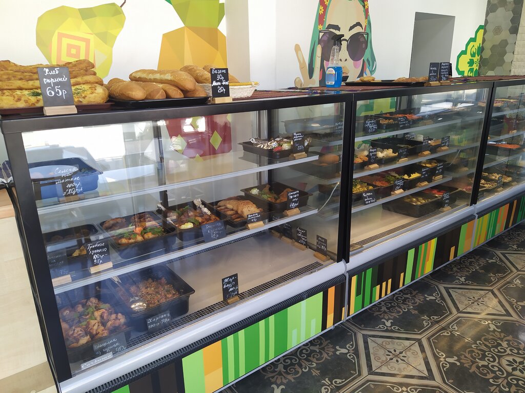 Вкусная еда , выпечка свежая , кондитерские очень вкусные изделия! Картофельное пюре можно было бы и повкуснее сделать - водянистый вкус , масла нет в нем или очень мало, блюдо из курицы жареной - чуть недожарено от кости , филе рыбное очень вкусно приготовлено, нежное , скушал даже ребёнок. Лепешки ароматные , наисвежайшие! Рекомендую зайти и покушать полноценно!