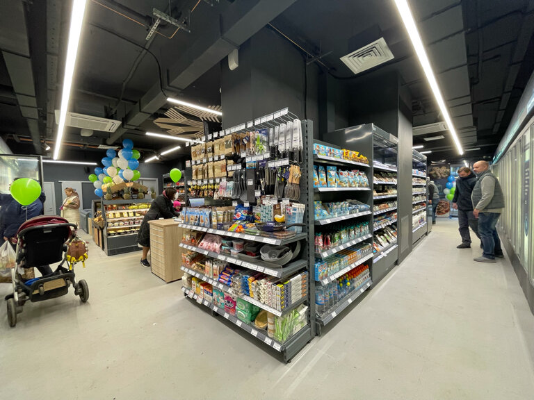 Очень вкусные продукты, много морепродуктов, большой выбор , часто беру на пасту , креветки , мидии, кальмара . Есть и молочные и хлебные товары . Система скидок , без карты по номеру телефона . Работает до 23 часов .