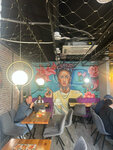 Прекрасное заведение с очень классным, отзывчивым персоналом. Молодой человек помогал с коляской, чтобы ее занести и вынести, хотя со мной были другие девушки (мы были втроём). Сегодня первый раз вышла с маленьким ребенком в люди. В заведении оказался детский стул, что очень было круто, он есть не везде. Не учла время кормления, попросила ложку у персонала, чтобы покормить ребенка. Девочки пошли на встречу, дали приборы. Блюда вынесли очень быстро, бургер и мохито были очень вкусные. Адекватная цена, что тоже радует. Спасибо сегодняшнему персоналу за еду и обслуживание, и извините пожалуйста за неудобства, которые мы причинили с дитем и коляской