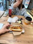Сегодня проходила мимо, увидела бургерную, решила пообедать, бургер к сожалению не смогла взять, т. к торопилась, а он большой. Взяла хот-дог, я их не очень люблю, но этот был настолько вкусный, сосиска не разваливается, пекин капуста и огурчики свежие, а самое крутое, что булка не сухущая,а хрустящая, так вкусно, что первые мысли были жаль я редко бываю в этом районе. Парни за стойкой приятные, улыбчивые.Мимо буду проходить, обязательно зайду ещё
