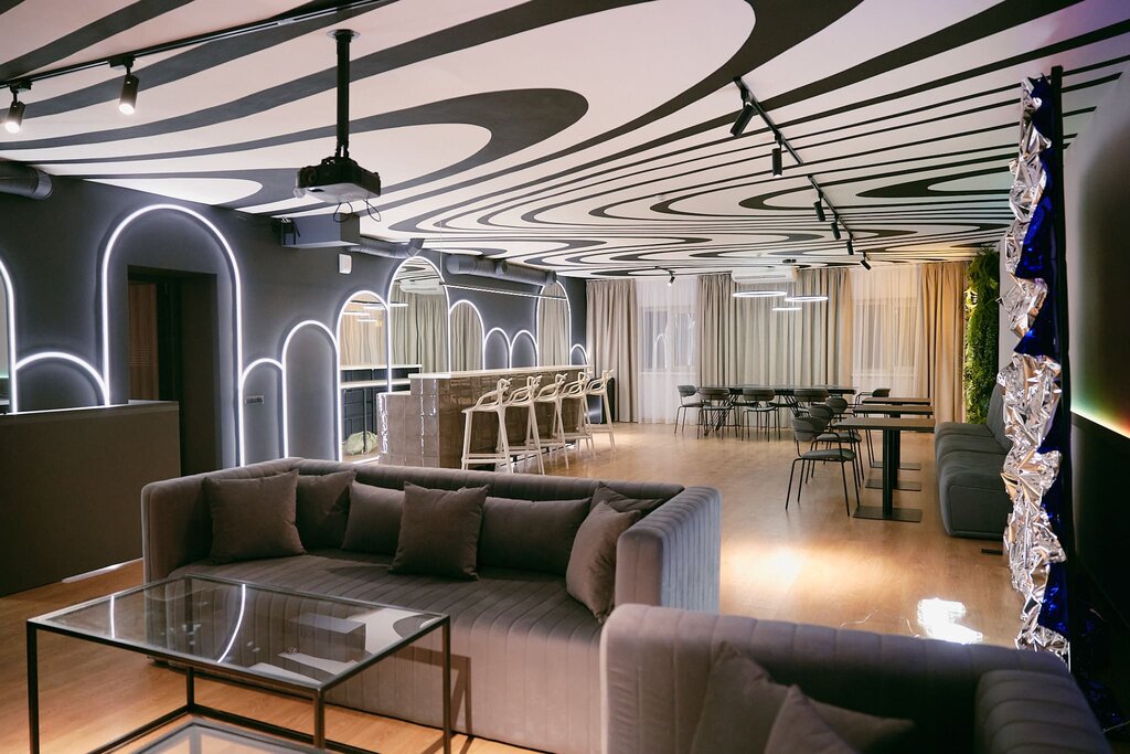 120 м2, вместимость до 40 человек В стоимость аренды входит: - Профессиональное звуковое оборудование - Караоке - Проектор/экран - Wi/fi - Настольные игры - Барная стойка и холодильник со льдом - 2 фотозоны