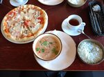 Прекрасное место, расположеное в центре города рядом с остановкой транспорта. В холодное время удачно заглянули на чашечку чая и небольшой перекус. Доброжелательный, приветливый персонал. Быстро подошли и взяли заказ. Взяла том ям, пиццу и чай. Чай принесли буквально через пару минут после заказа. Том ям приятный по остроте. Пицца с пылу с жару, начинки достаточно.
