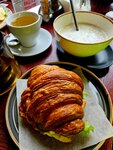 На удивление, мне сегодня принесли всё первой. Круасан был большой и хрустящий. Официант Сергей очень внимателен, спасибо Заведение семейное, уютное. Рекомендую
