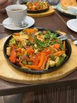 Приятный интерьер, вежливый персонал, но с блюдами не очень повезло видимо. Брали сковородку и бургер. Сковородка нормальная, а бургер как будто просто разогрели замороженный. Булка не хрустит, чуть теплый, котлета не сочная. В общем вроде не плохо, но холодный бургер за 750 рублей всё омрачил.
